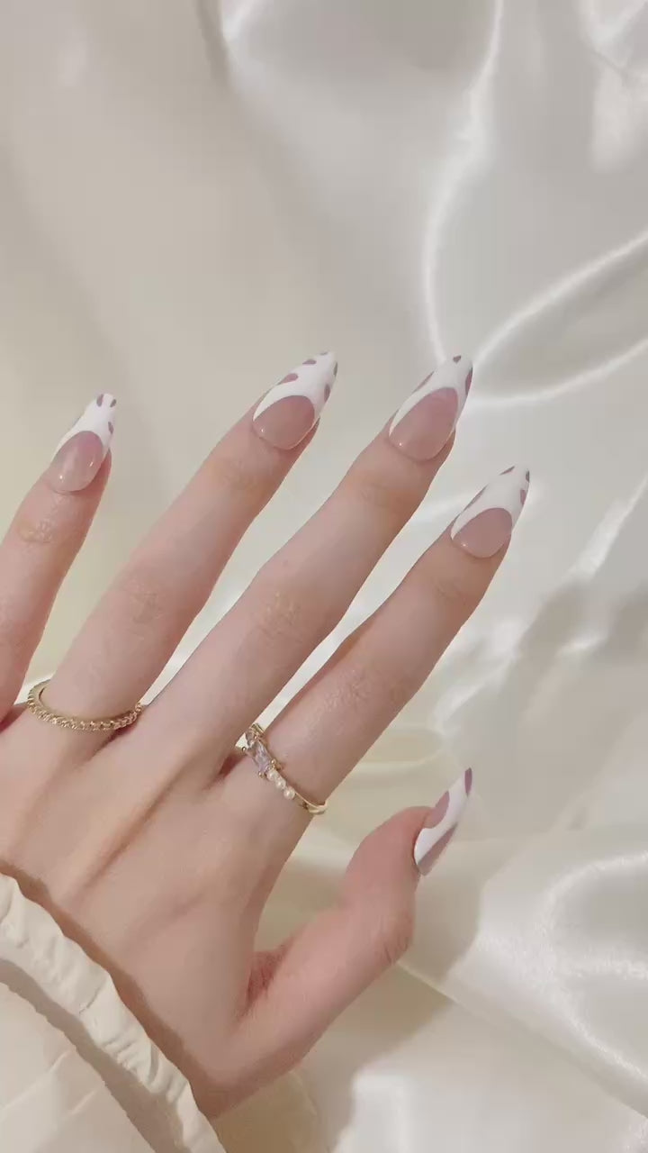 ミスティック スポット ネイル デザインは、紫と白のトーンをブレンドし、不規則なパターンがミステリアスで芸術的な雰囲気を醸し出しています。このデザインは、ユニークさとスタイルを求める人にぴったりで、普段使いやファッション イベントに最適です。